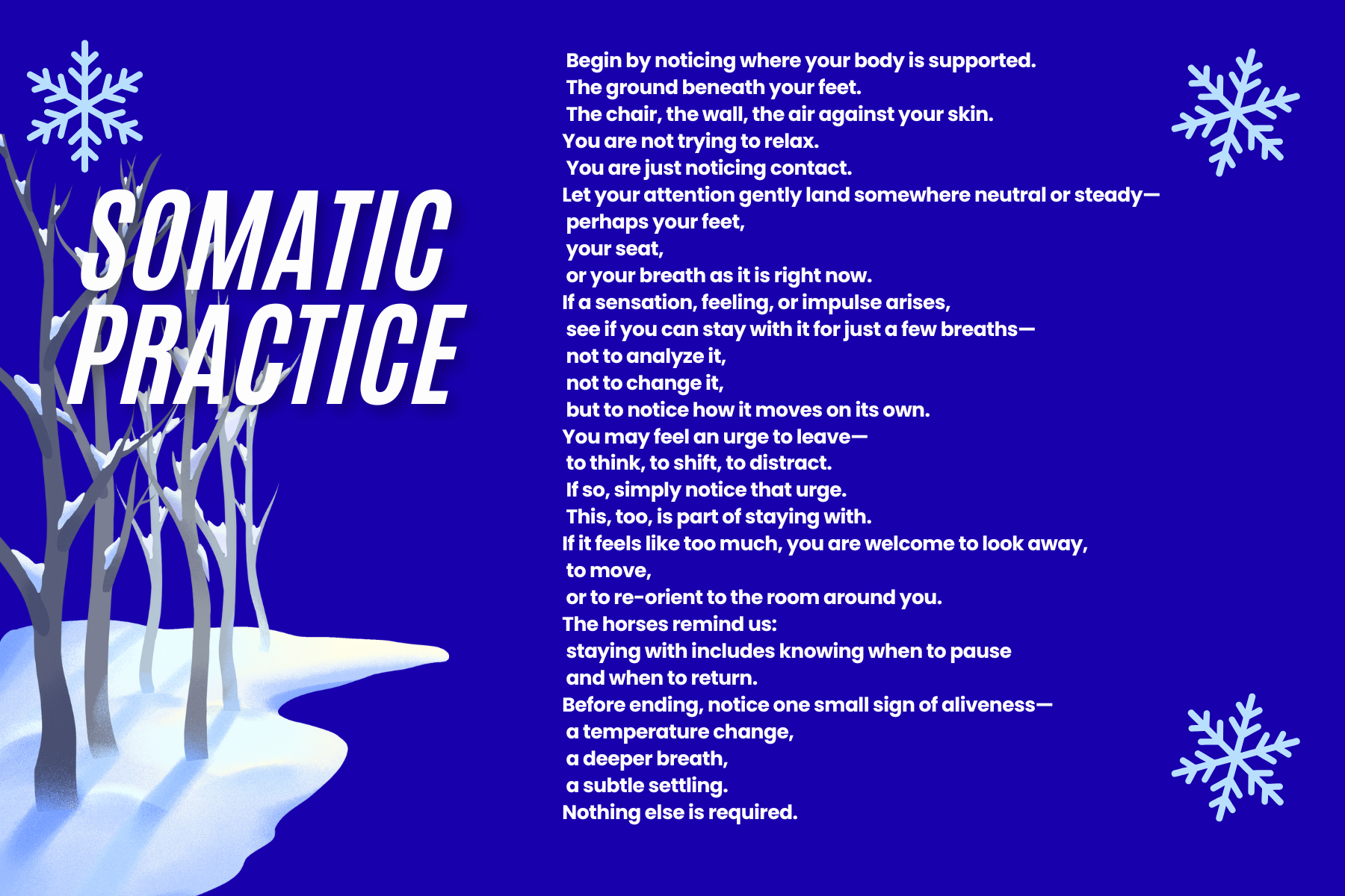Below you’ll find your January Equine Wisdom Card and Somatic Practices—