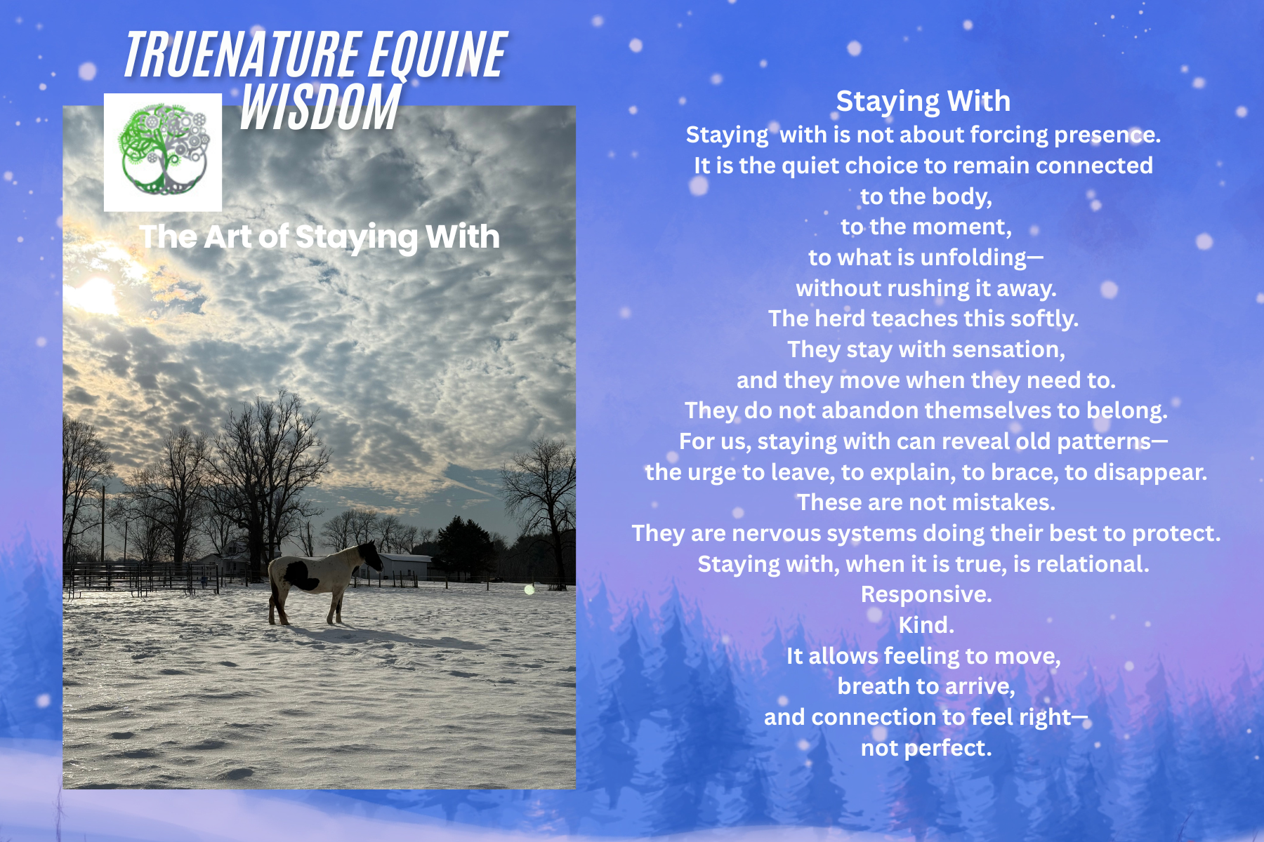 This is the season of staying—when the world remains hushed, when the wind moves slowly across the land, and when the horses show us how to remain present within the cold.