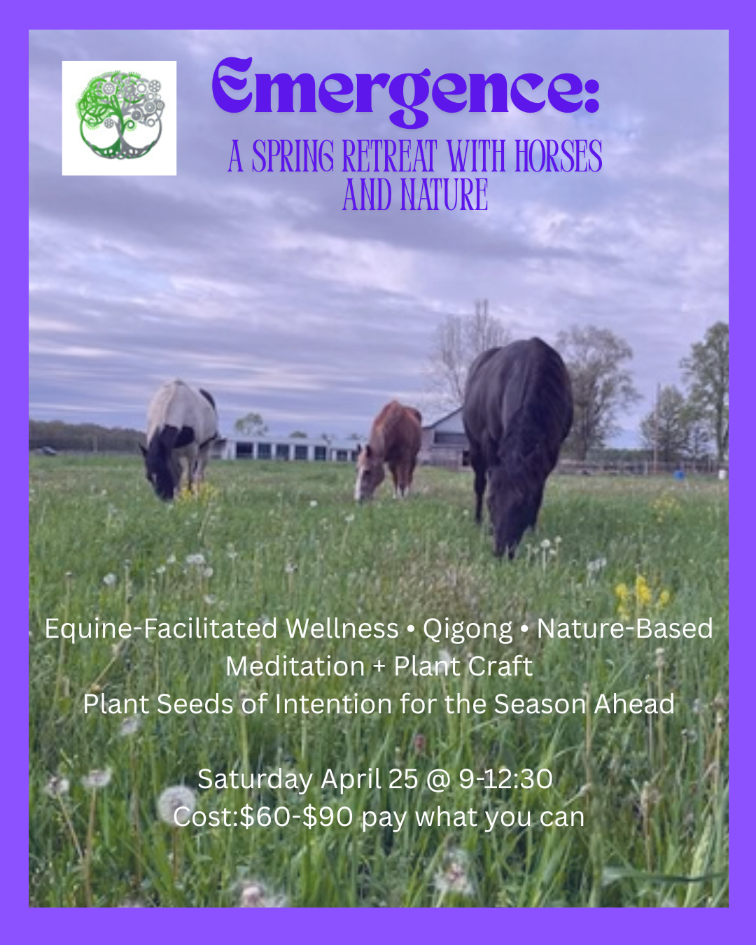 🐎 Equine-facilitated wellness with the herd 🌿 Restorative Qigong practice 🌱 Decorating and planting your own intention seed pot 🌼 A wildflower seed offering to nourish the land and pollinators